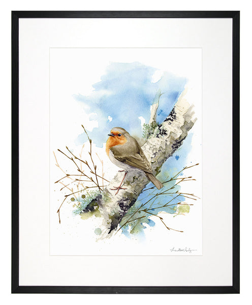 Akvarellmålning upptryckt i Fine art där reproduktionen är omsorgsfullt framtagen i min ateljé. Tavlan ramas in med syrafri passepartout i tunn svart träram med synlig ådring. Du väljer själv vilken storlek som passar bäst hos dig: